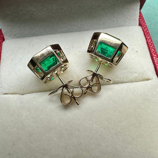 18K yellow gold 6.65ct lab grown emerald earring studs