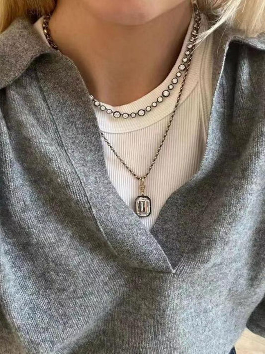 PT950 Customied 1ct Emerald cut 0.4ct Round Cut Elegant Lab Grown Diamond Necklace for Women Party Gift Jewelry