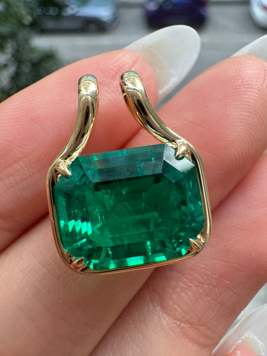 Pirmiana Custom Design Retro Style 18K Yellow Gold 5.5ct Lab Grown Emerald Pendant