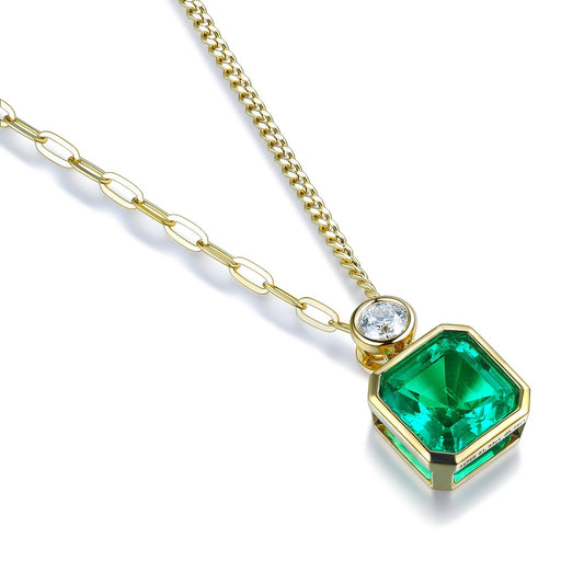 Pirmiana New Fashion 1.84ct Lab Grown Emerald Pendant Necklace 18K Gold Jewelry for Woman Gift Pendants