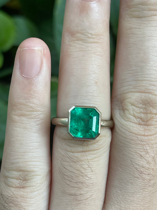 18K yellow gold 3.0ct lab grown emerald ring