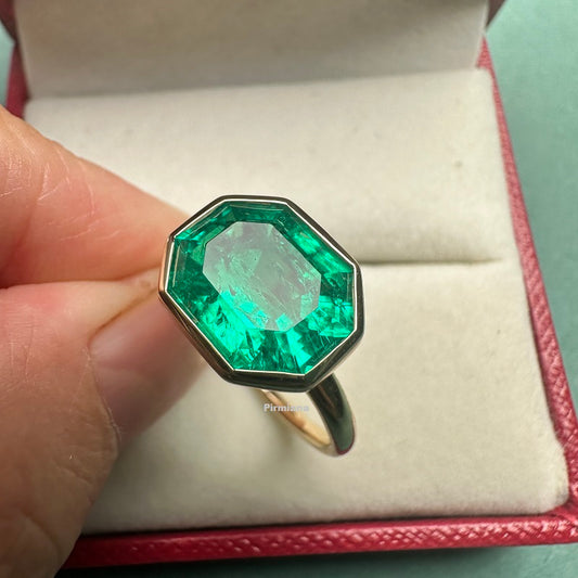 Pirmiana Custom Design 14K Soild Gold 4.06ct Lab Grown Emerald Ring