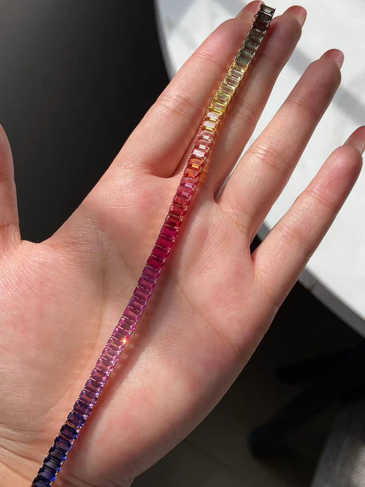 Primiana 2025 New Classic Style18K Rose Gold Main Stone 3x5mm Emerald Shape Lab Grow Sapphire Rainbow Bracelet Girlfriend