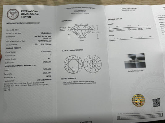 Pirmiana Round 6.5-6.7ct Lab Grown Diamond F VS1 2EX N IGI Certificate Same As Real Diamond