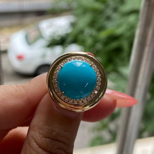 Primiana 2025 New Classic Style18K Gold Natural Turquoise 12x12 MM Round Shape Side Stone Lab Diamond Rings Girlfriend Gif