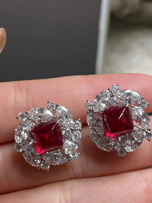 Pirmiana New Arrival 7.48ct Lab Grown Ruby Earring Studs S925 Silver Jewelry Earrings for Women