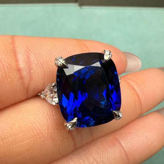 Pirmiana Custom Design 18k White Gold Ring for Women 19.95ct Lab Grown Sapphire And DEF HPHT Diamond Jewelry