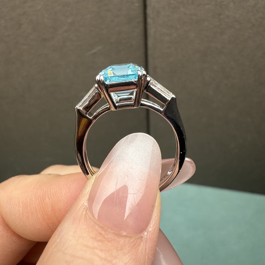 Pirmiana Custom Design 18k White Gold Ring for Women 5.03ct Lab Grown Aquamarine And DEF HPHT Diamond Jewelry