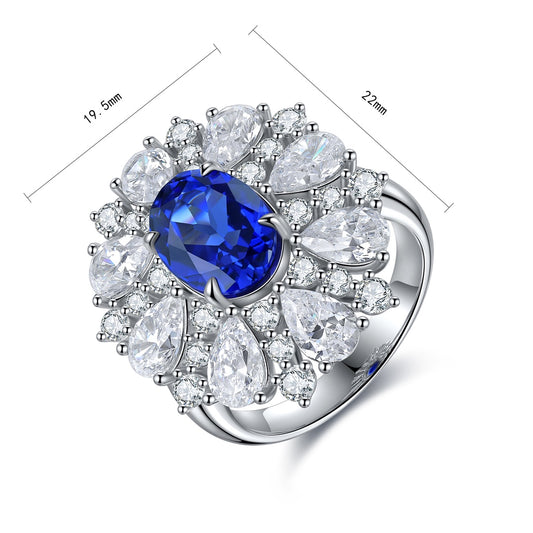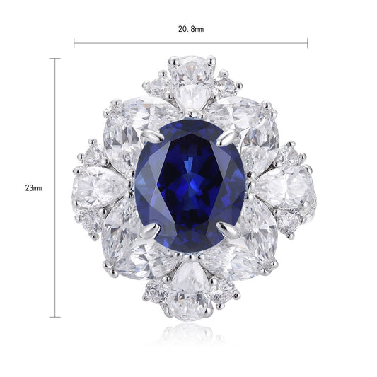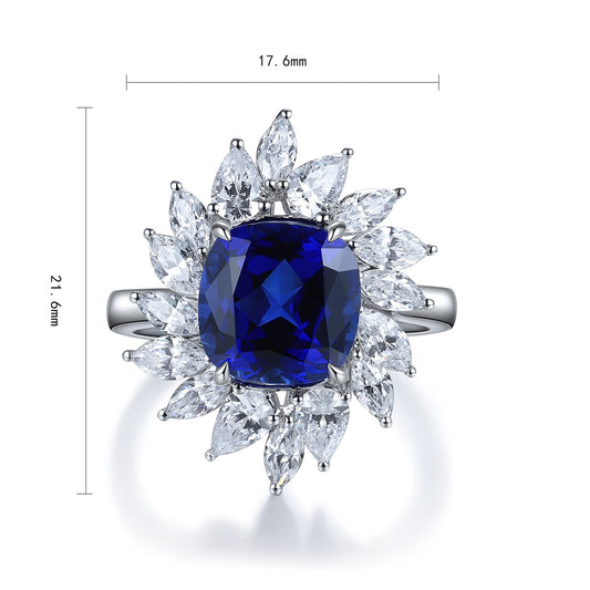 Pirmiana Jewelry S925 Silver 8.43ct Lab Grown Blue Sapphire Ring Engagement Wedding Gifts