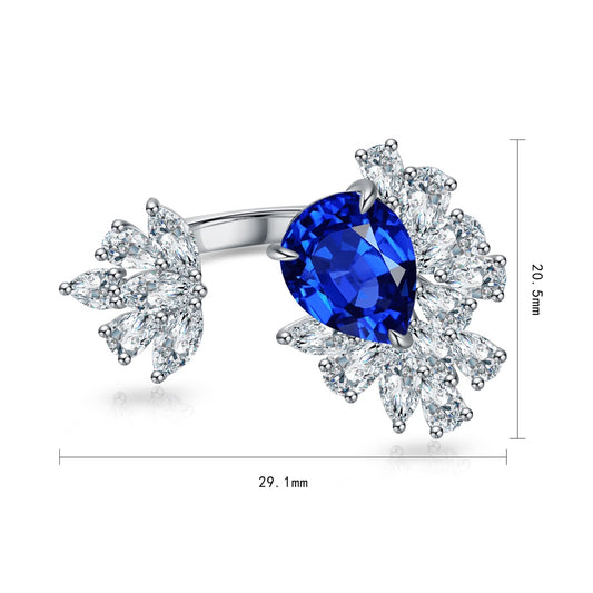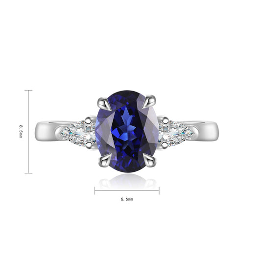 Pirmiana Jewelry S925 Silver Pear Shape 2.5ct Lab Grown Blue Sapphire Ring Fashion Finger Jewelry Women Engagementring