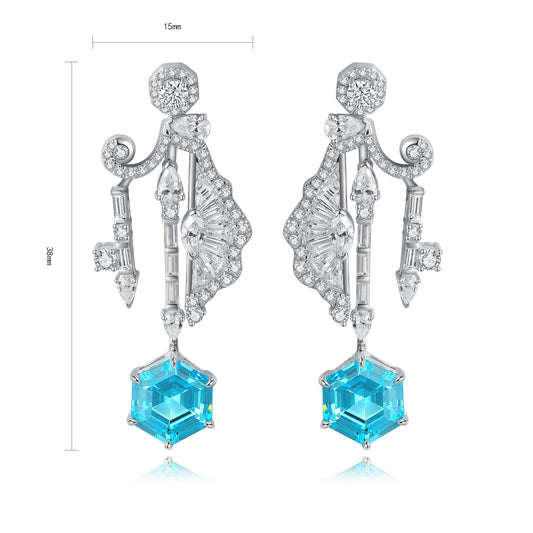 Pirmiana Hot Sale 18.37ct Lab Grown Paraiba Sapphire Earrings S925 Silver Jewelry Engagement Women