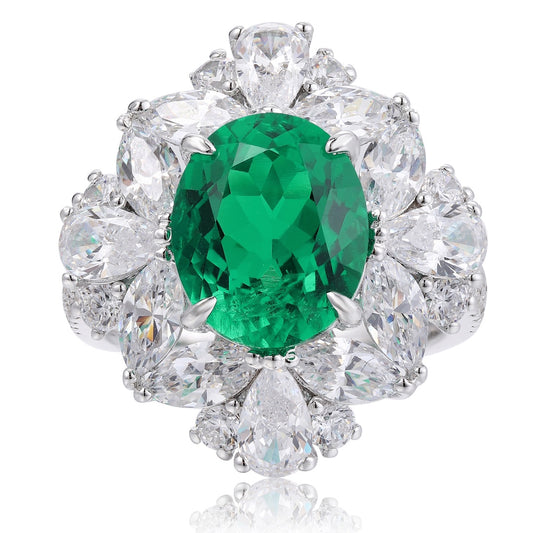 Pirmiana 2024 Hot Sale S925 Silver 4.435ct Lab Grown Emerald Ring Women Engagement Fashion Finger Gemstone Jewelry