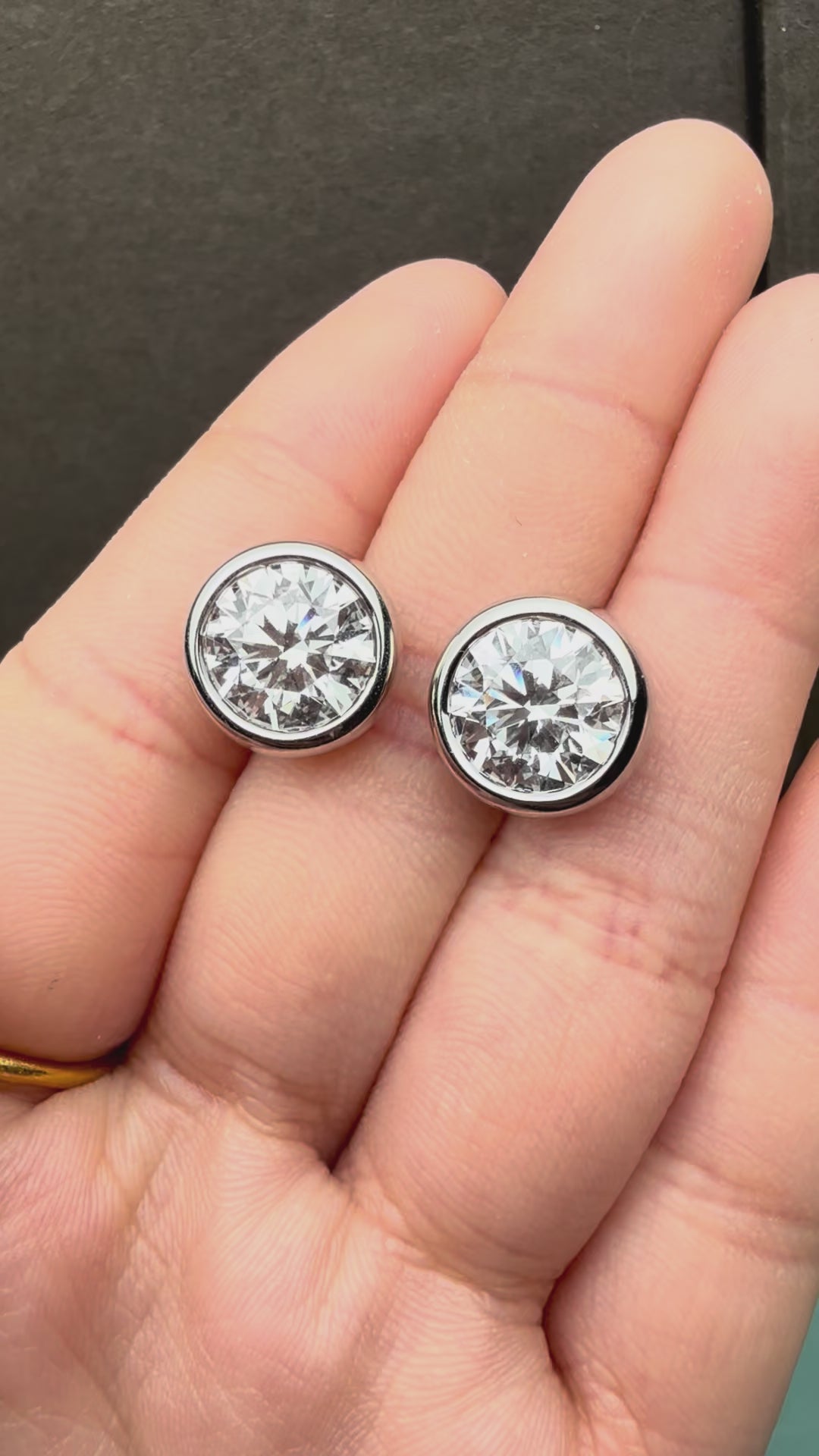 Pirmiana Custom Design 18K White Gold Bezal Earrings for Women 3ct E VS1 Lab Grown Diamond Jewelry
