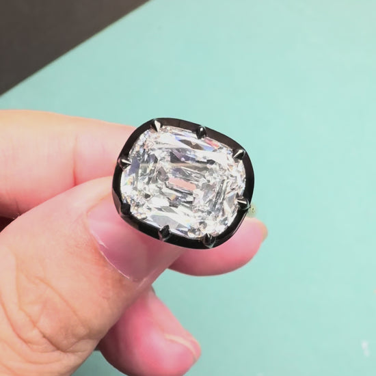 Pirmiana Custom Made 6.72ct Old Mine Cushion Cut CVD Lab Grown Diamond Ring in 18k Yellow and Black Gold Ring