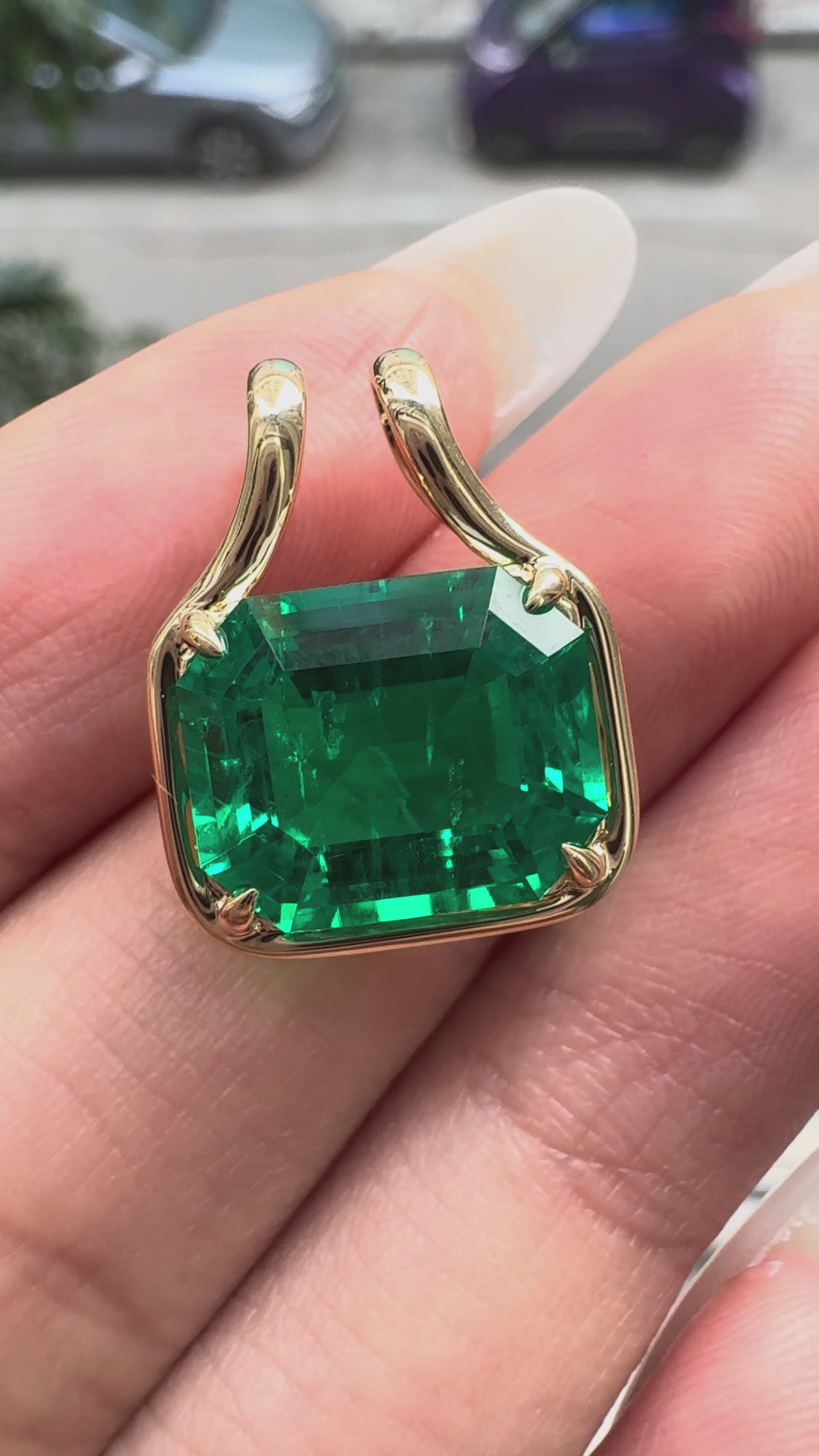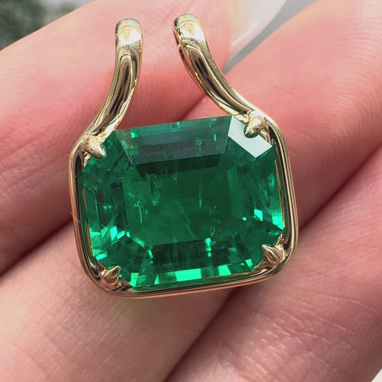 Pirmiana Custom Design Retro Style 18K Yellow Gold 5.5ct Lab Grown Emerald Pendant