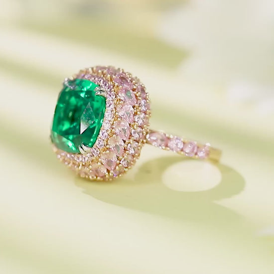 Pirmiana Customized 18K Gold 6.52ct Lab Grown Emerald Ring Engagement Band Jewelry for Women/Men Gifts