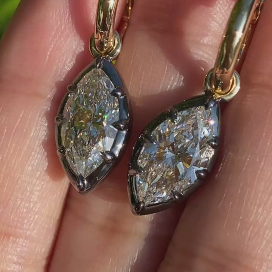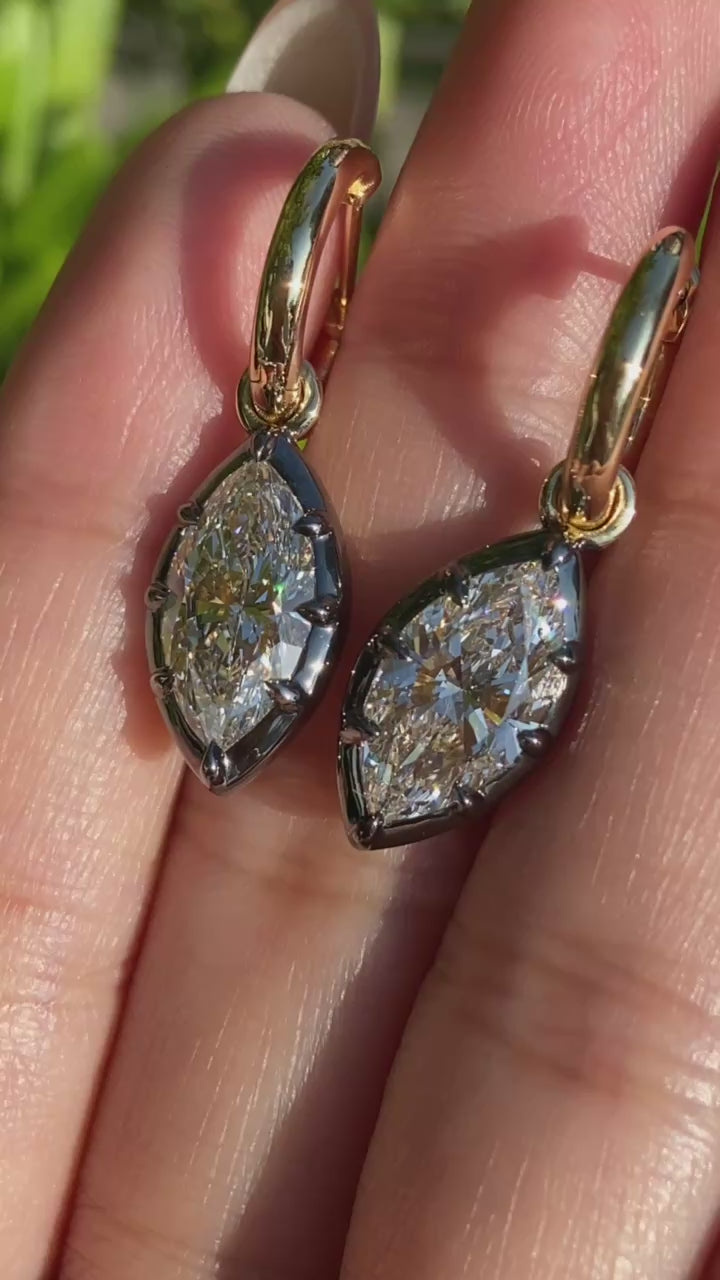 Pirmiana Hot Sale Classic Design Marquiso Shape Earrings Each 2ct Lab Grown Diamond 18K Black + Yellow Gold Girlfriend Gift