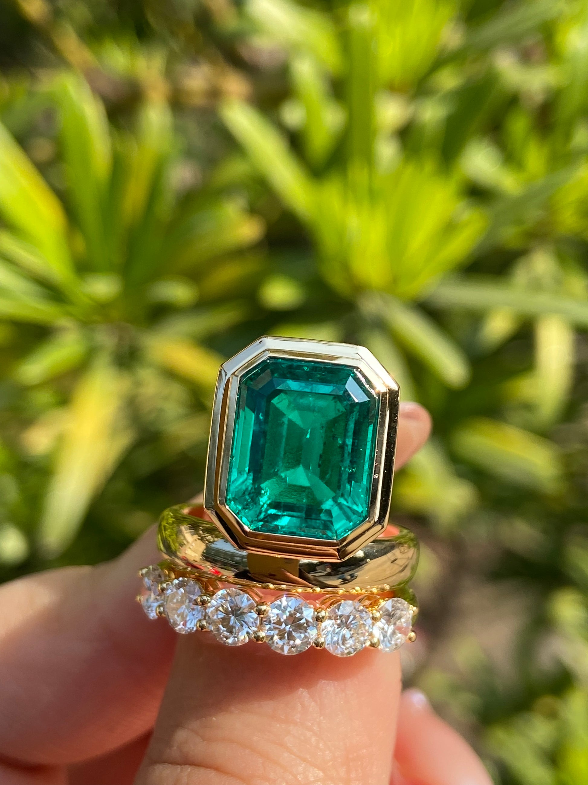 Pirmiana Hot Sale Classic Design Ring Overlapping 9x11mm 4.266ct Emerald Shape Lab Grown Emerald And Lab Grown Diamond 18k Yellow Gold Girlfriend Gift