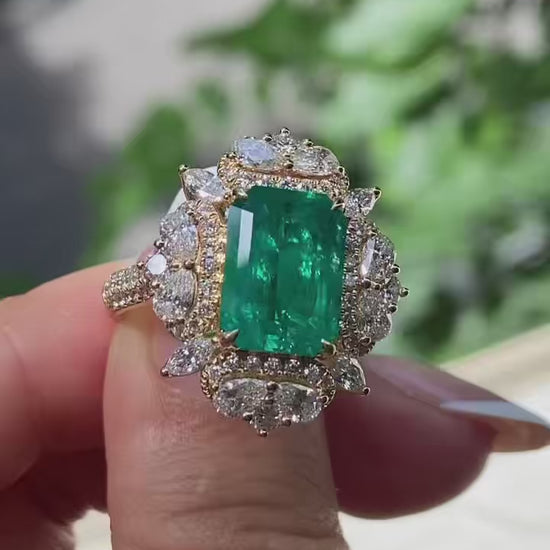 main stone: 8x11mm 3.35ct lab grown emerald with