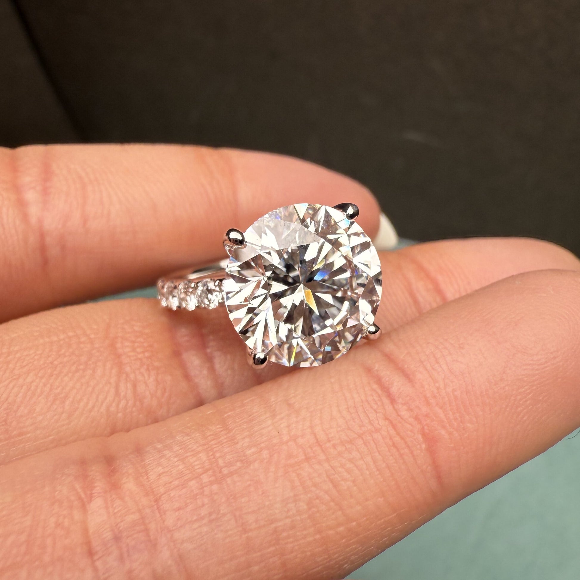 Pirmiana Jewelry Customized 14k White Gold 4ct Round shape Lab Grown Diamond Engagement Wedding Band Rings for Women
