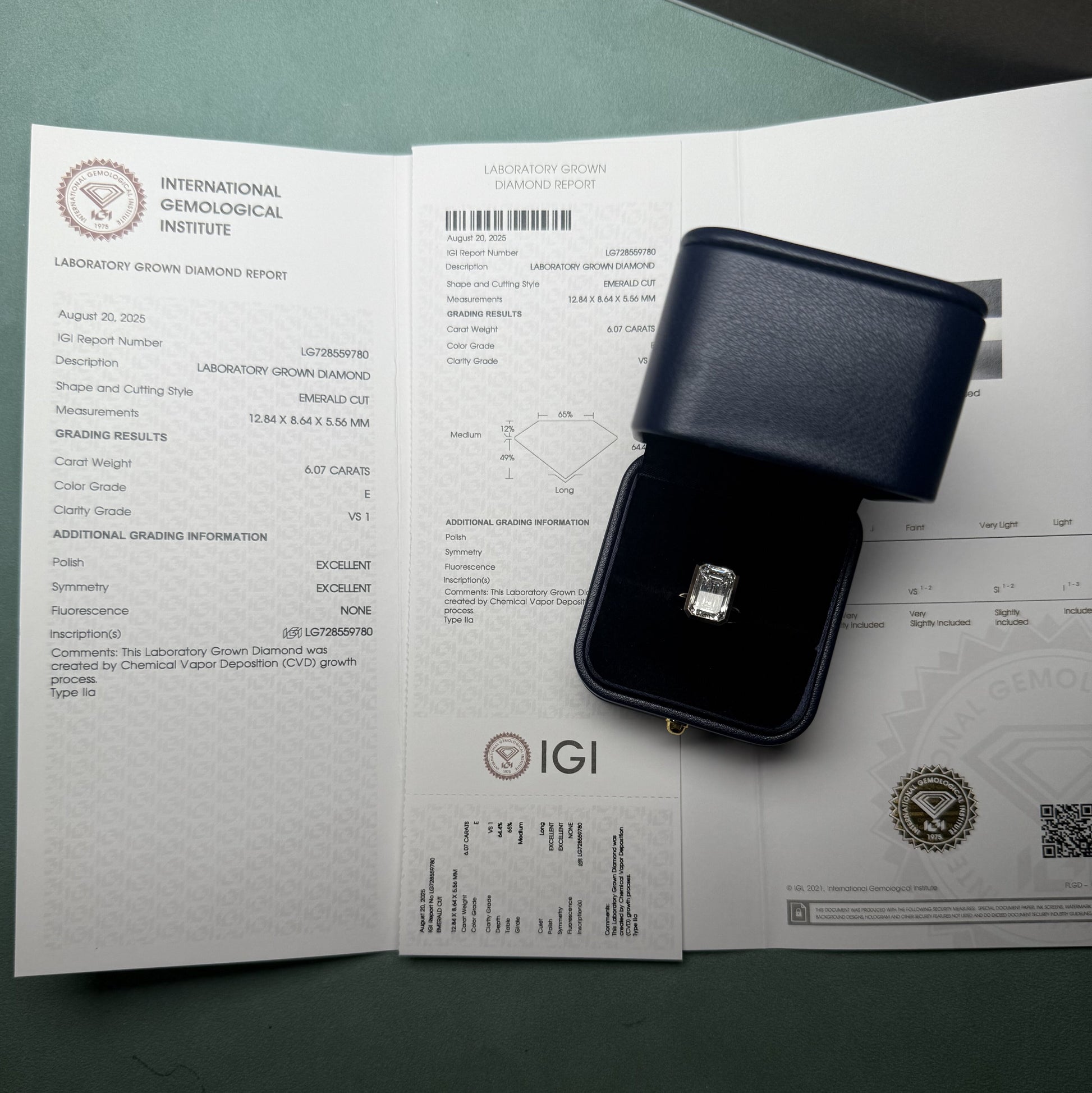 main stone: 6ct CVD lab grown diamond with IGI certificate