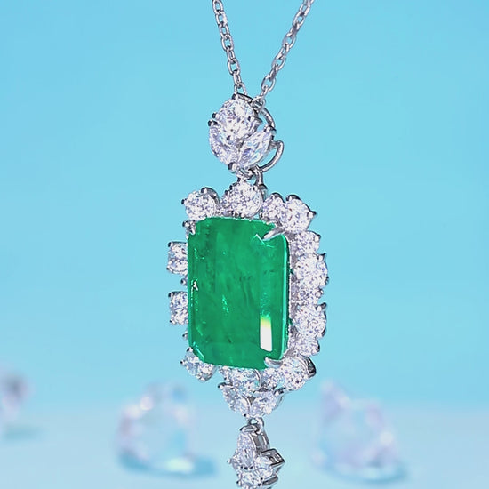 Pirmiana New Fashion 9.56ct Lab Grown Emerald Necklace S925 Silver Jewelry for Woman Gift Pendants