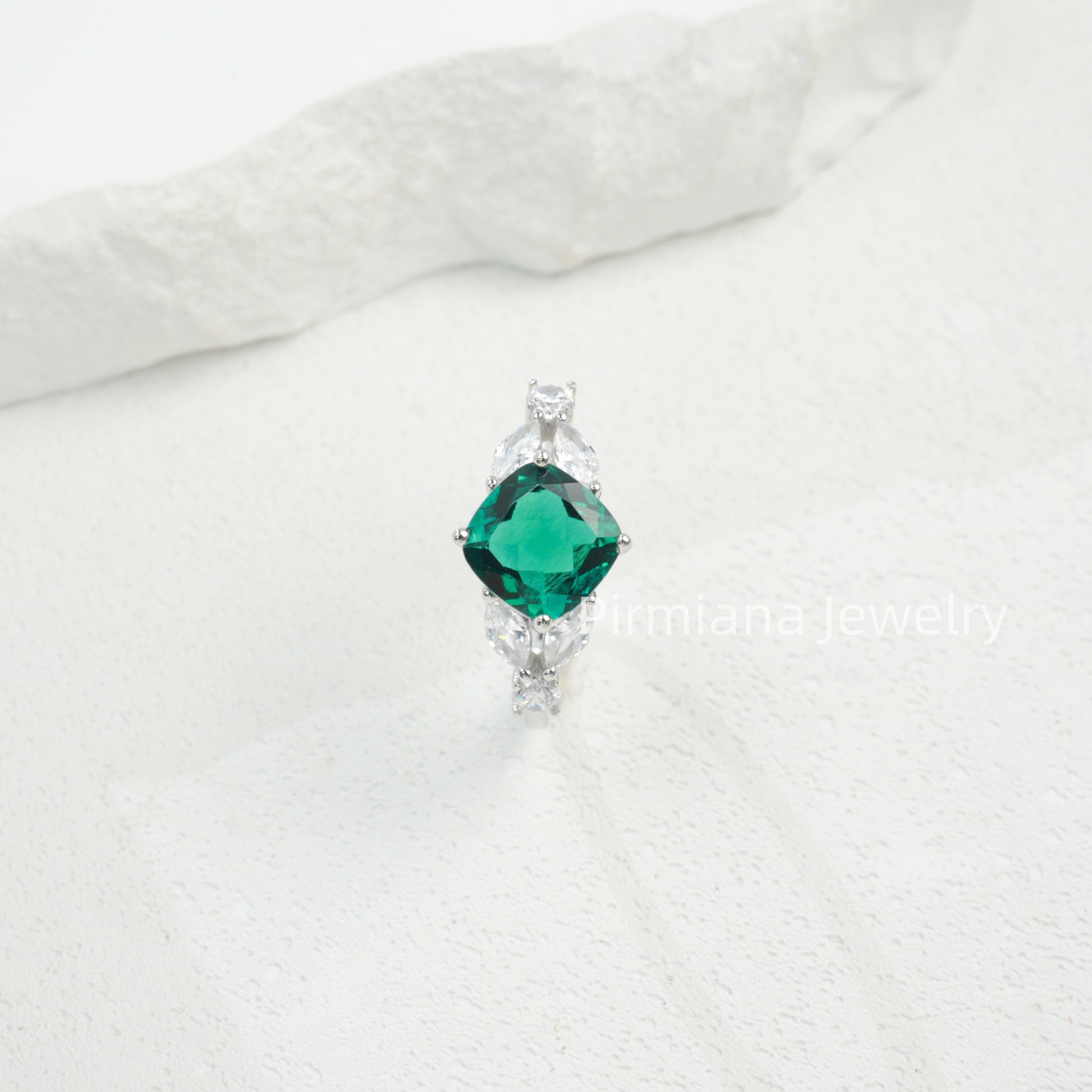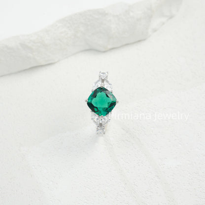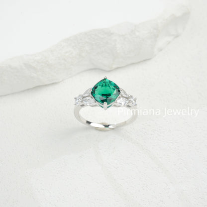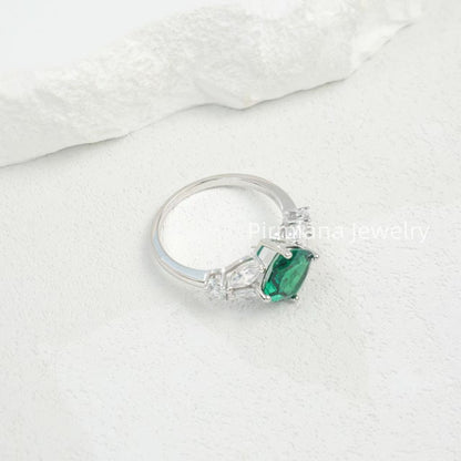 Pirmiana S925 Silver Gemstone Rings | Lab Grown Emerald & Sapphire Elegant Women's Jewelry