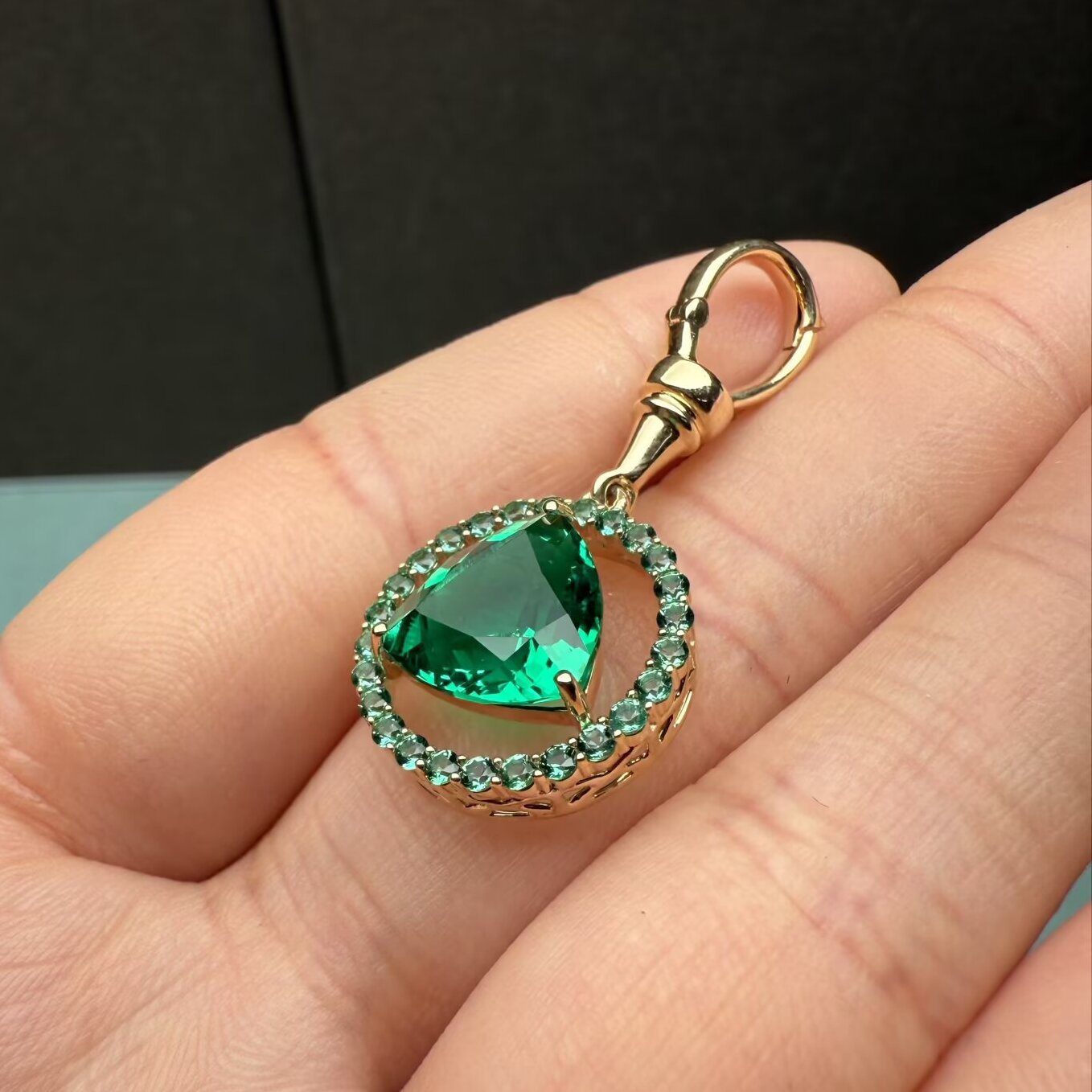 Primiana 2025 New Classic Style 9K 11x11mm 4ct Triangle ShapeLab Grwon Emerlad Pendant Girlfriend Gift