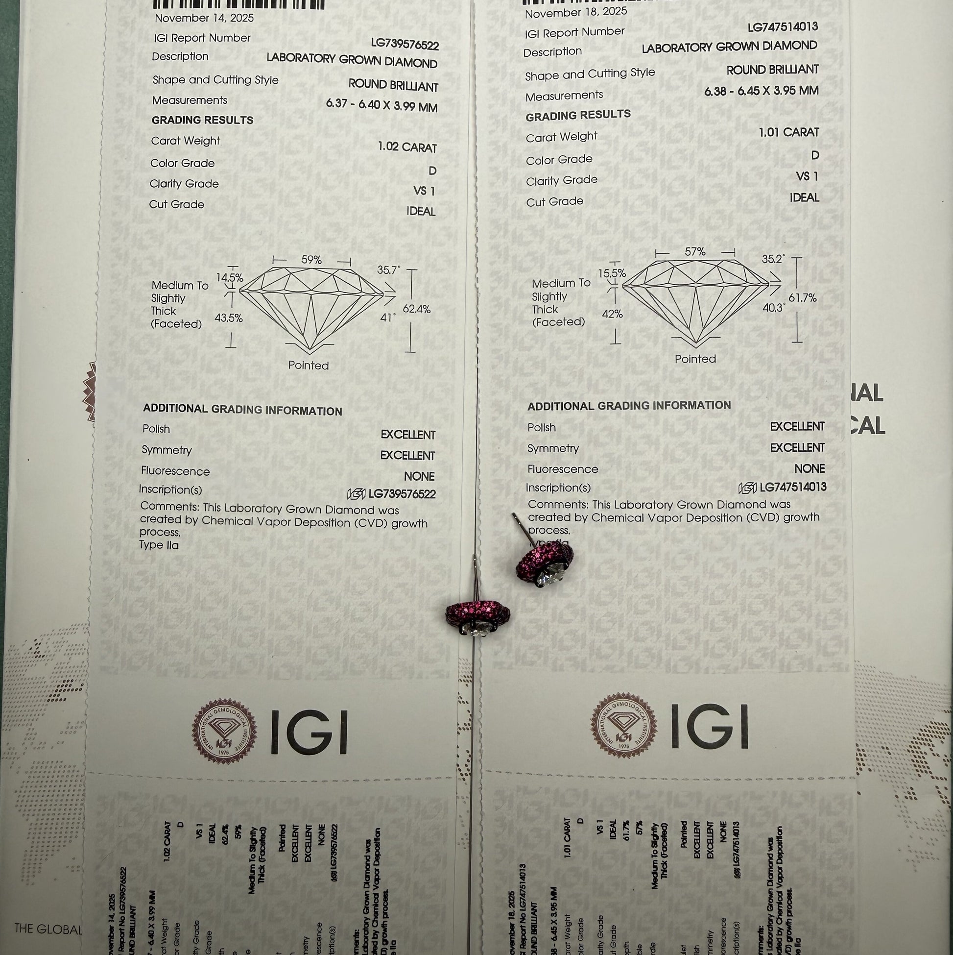 main stone: 1ct D VS1 each CVD lab grown diamond with IGI certificate