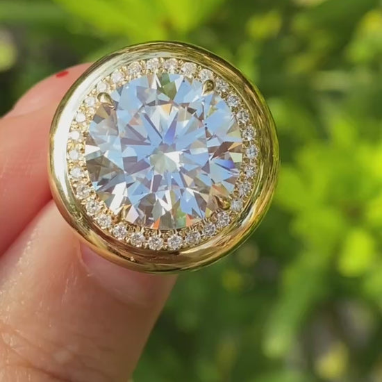 Pirmiana Hot Sale Classic Design Main Stone 7ct Round Shape Ring Side Stone Lab Grown Diamond 18K Gold Girlfriend Gift
