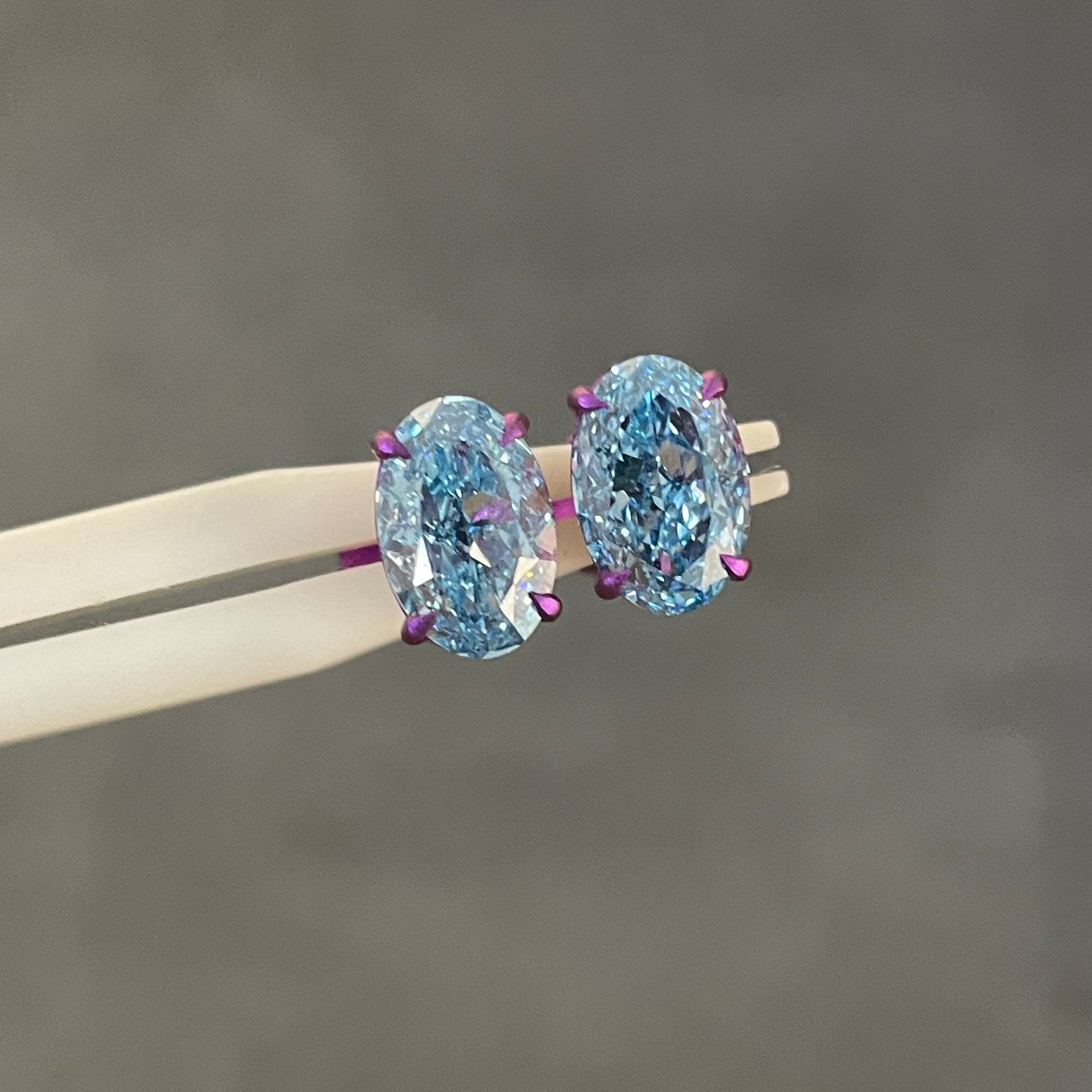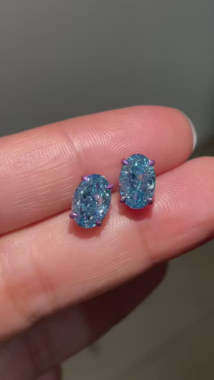 Pirmiana Jewelry Customized titanium Oval Shape 2ct Each Lab Grown Blue Diamond Earrings for Women Party Gift