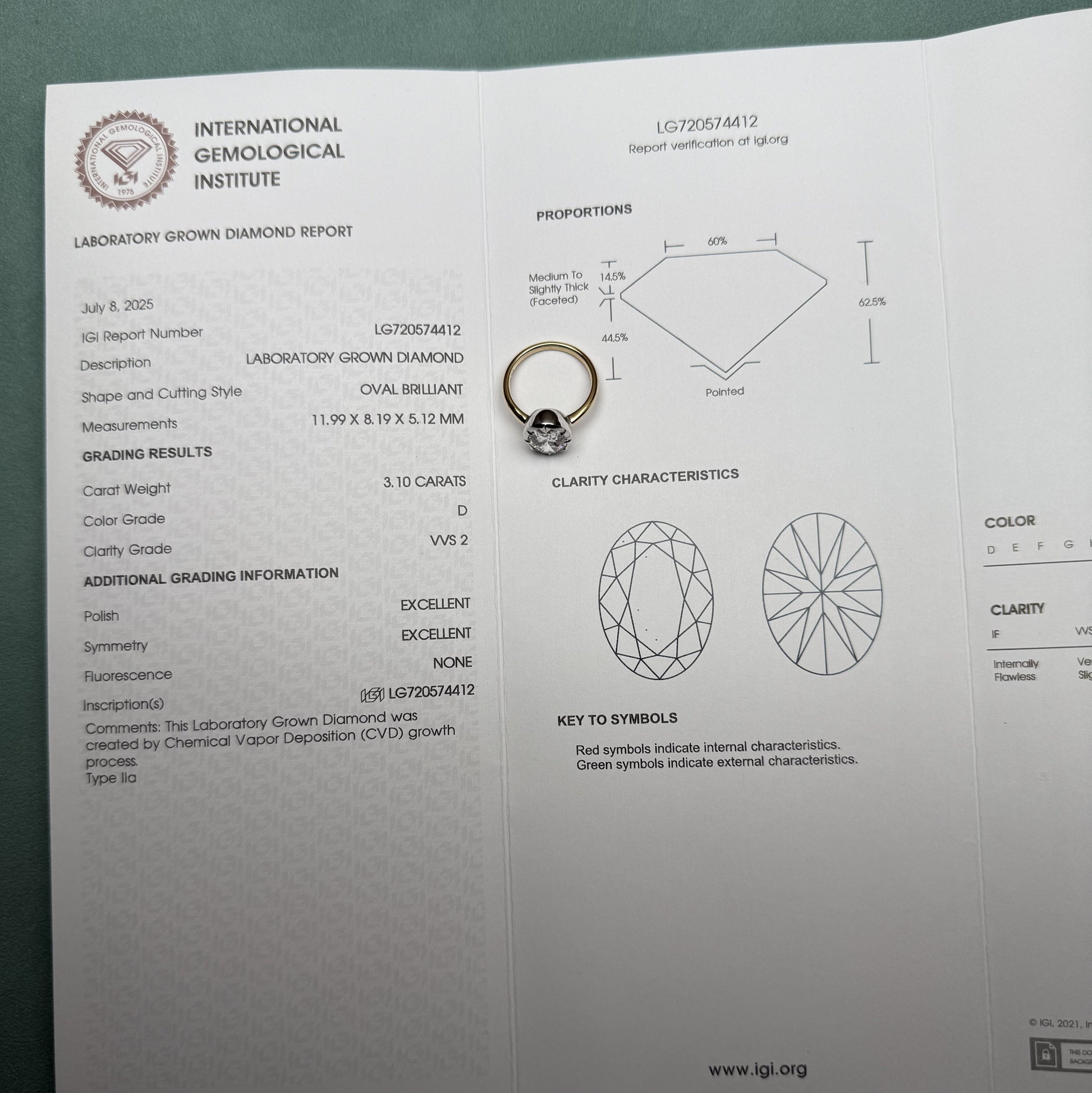 main stone: 3ct CVD lab grown diamond with IGI certificate